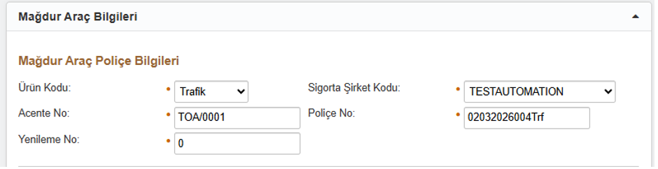 4. "Mağdur Araç Poliçe Bilgileri” Adımı
